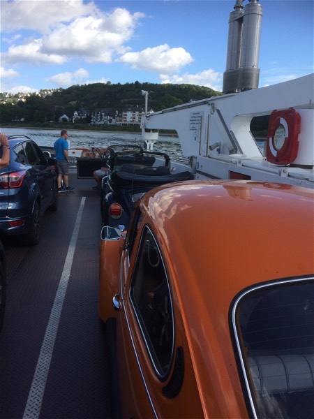 Am zweiten Tag auf der Fähre über den Rhein bei Remagen.