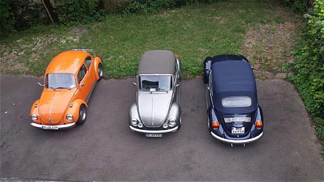 Unsere Käfer in Reih und Glied auf dem Parkplatz der Ferienwohnung, direkt an der Ahr.
