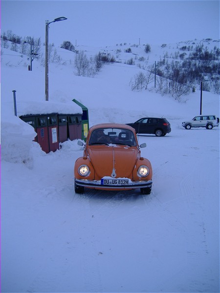 Die gesamte Fahrt von rund 3000 Kilometern für 75 Kilometer Teststrecke. Das Käferchen hatte sich super geschlagen und sich als nordkaptourtauglich erwiesen.